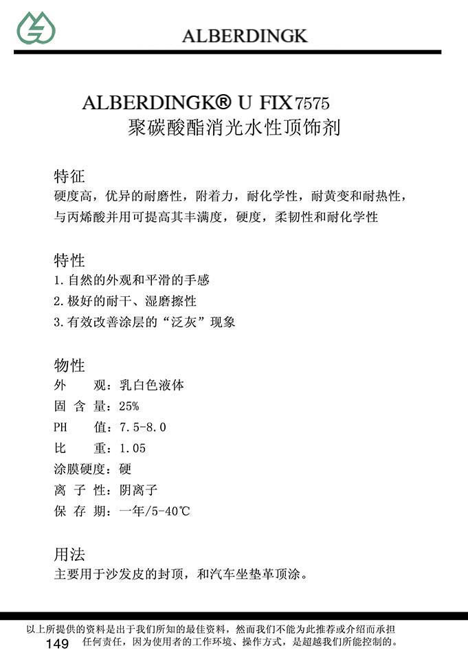 聚碳酸酯消光水性顶饰剂 U FIX7575