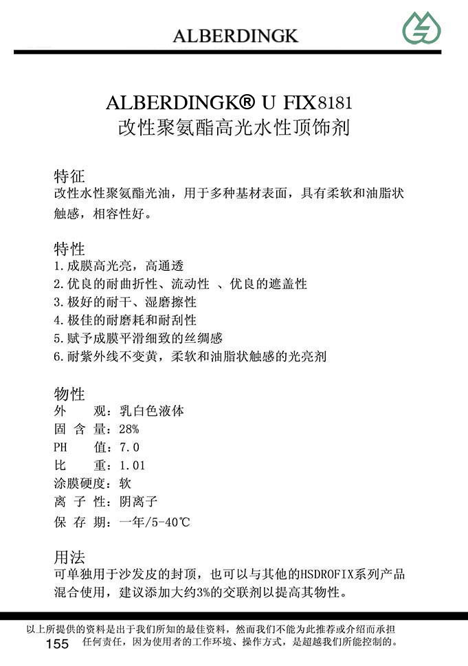 改性聚氨酯高光水性顶饰剂 U FIX8181
