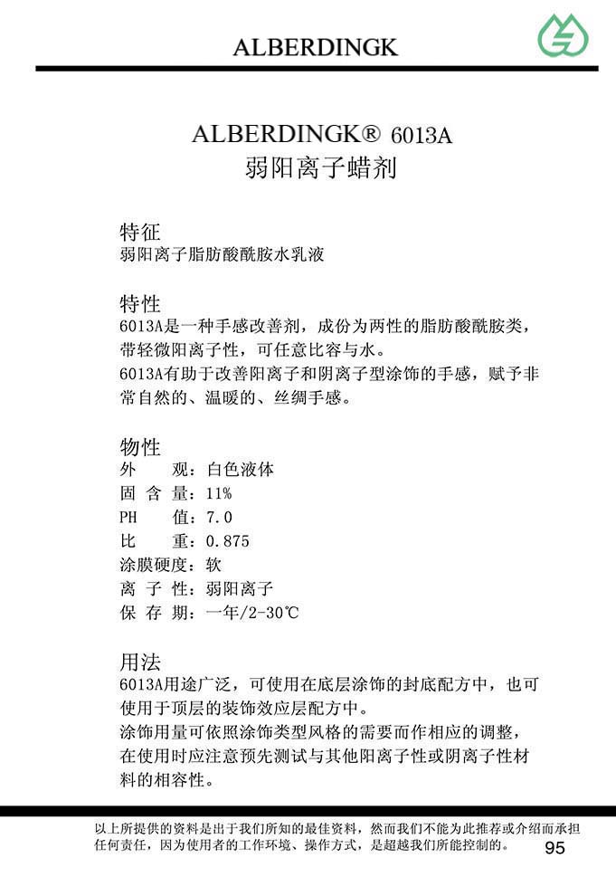 弱阳离子蜡剂 6013A